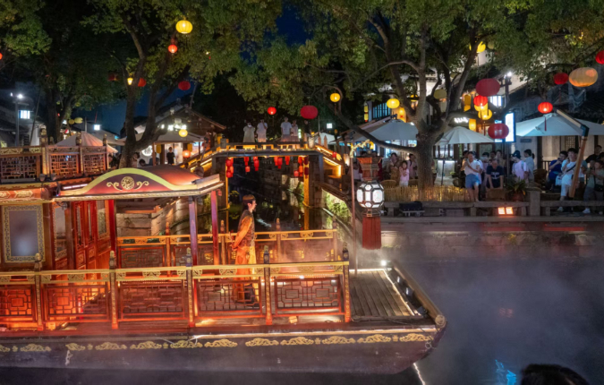 千年祠堂里,黑胶唱片机流淌出《二泉映月》的悠扬旋律;光影秀中,无人机编队在夜空勾勒出巨型二胡轮廓;年轻游客身着汉服,在国潮市集与非遗传承人互动……位于无锡的惠山映月里街区正通过“音乐+科技+国潮艺术”的深度融合,将深厚的历史文脉转化为可感知、可体验、可消费的全新场景,激活消费市场的一池春水。