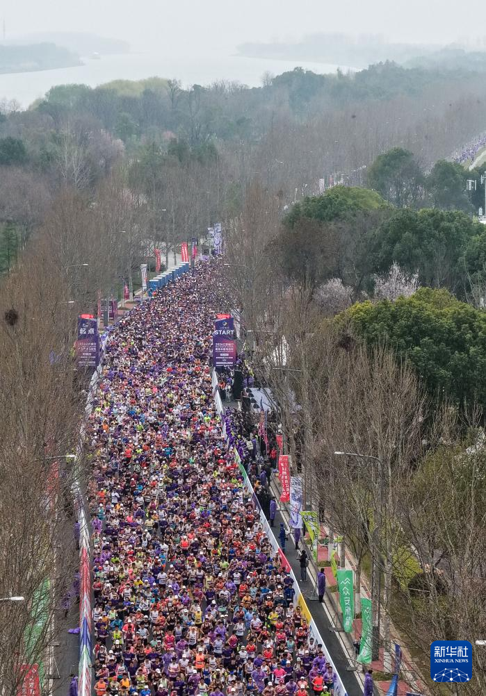 3月15日,2026南京半程马拉松在南京生态科技岛鸣枪起跑。(新华社记者 李博 摄)