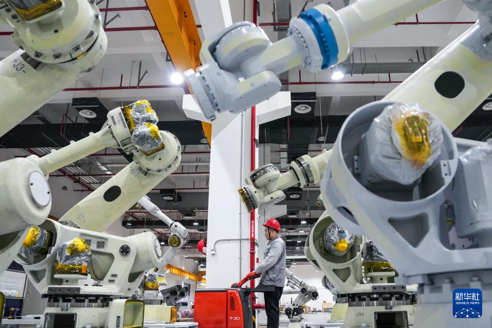 3月17日,在位于南京市江宁开发区的汇川技术南京基地自动化车间内,机器人在进行出厂前测试。